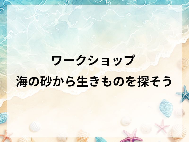 南の島の海岸の砂から、生きものなどをルーペを使って探し出します。ウニのトゲ、星砂、美しい貝殻、サンゴ、カニのハサミなどが見つかります。