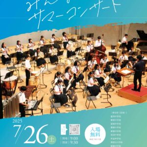 夏休みに市内の吹奏楽部、オーケストラ部、マーチングバンド等が集い、自由に互いの演奏を披露しあいます。ひたむきに音楽に取り組む姿をぜひご覧ください!