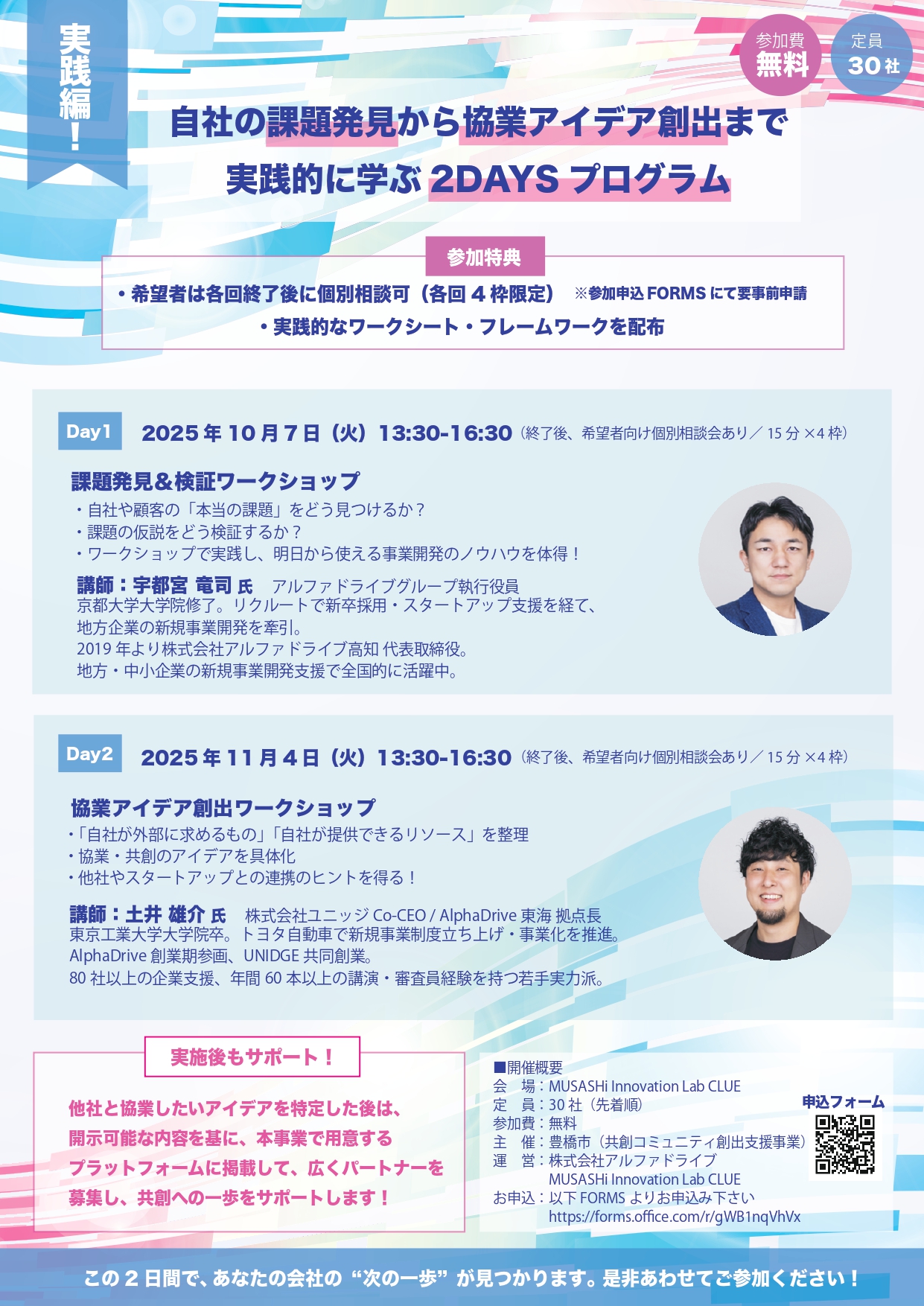 | 運営 | 株式会社アルファドライブ MUSASHi Innovation Lab CLUE |