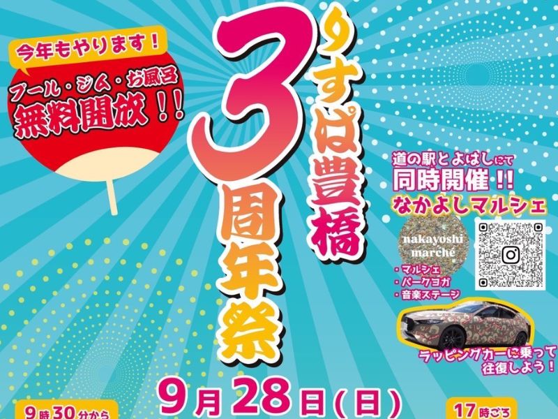 2025年9月27日(土)・28日(日)の2日間、りすぱ豊橋三周年を記念して特別イベントを開催します。