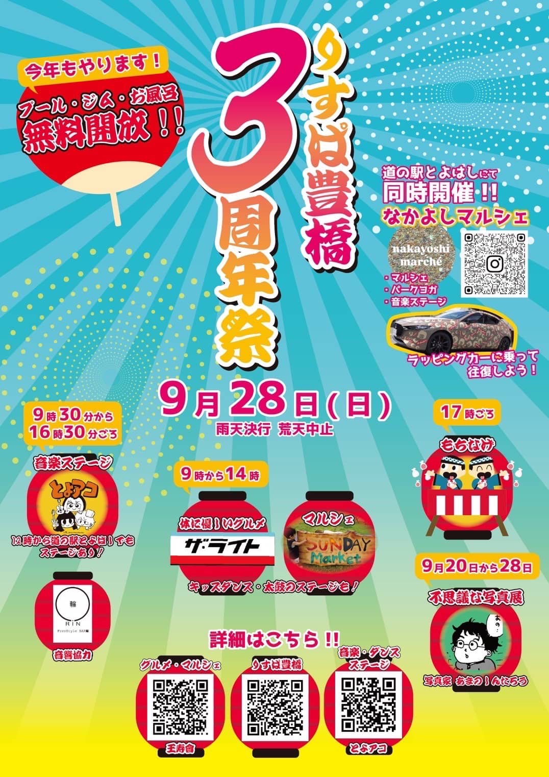 2025年9月27日(土)・28日(日)の2日間、りすぱ豊橋三周年を記念して特別イベントを開催します。