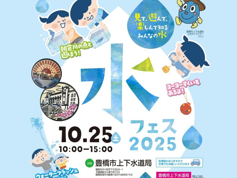 暮らしに欠かせない水道・下水道について、その役割や大切さを知ってもらい、上下水道事業を身近に感じてもらうため、市民参加型イベント『水フェス2025』を開催します。