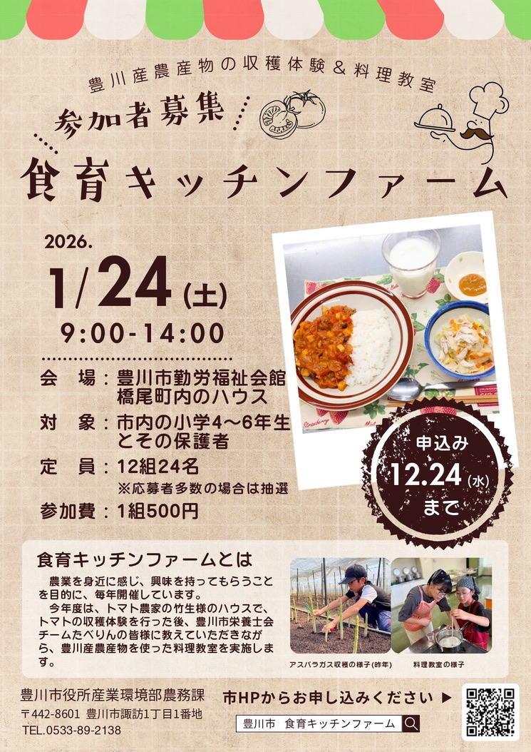 食育キッチンファームは、第3次豊川市食育推進計画に基づき、小学生にも、農業を身近に感じ、興味を持ってもらうことを目的に実施するものです。