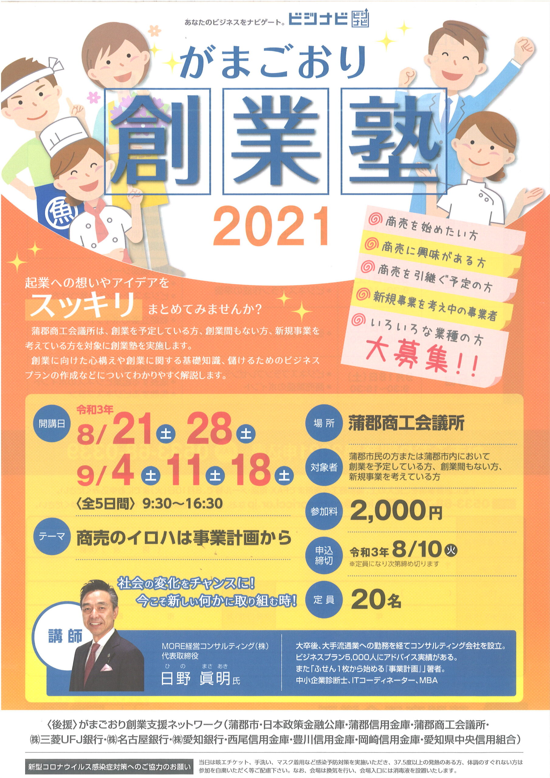 | 申込方法 | 蒲郡商工会議所へ電話・FAX・メール・WEBで申し込み 締切:2021年8月10日(火)まで |