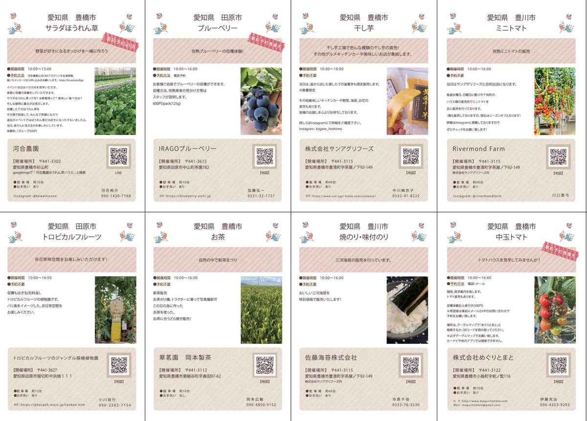 | 予約 | 事前予約が必要な農場もございます。 詳細は、チラシ・HPをご確認ください。 |