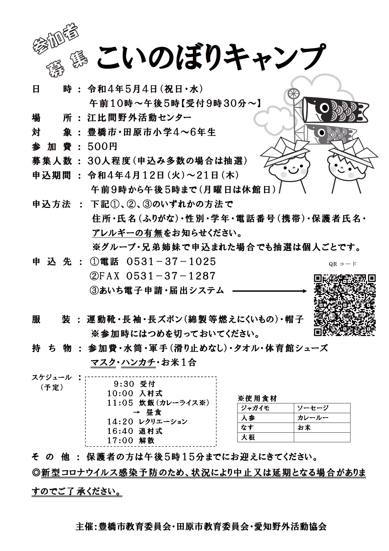 | 主催 | 豊橋市教育委員会・田原市教育委員会・愛知野外活動協会 |