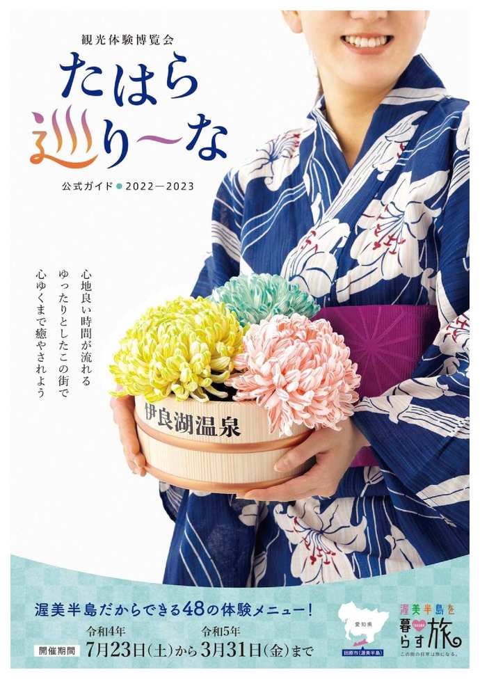 交流人口拡大と稼ぐ力の向上を図り、この地域を元気で豊かな街とするため、渥美半島の日常にドップリ浸かる2022観光体験博覧会「たはら巡り~な」を開催します。「渥美半島を暮らす旅」をコンセプトに「花・農業・漁業」「自然」「手づくり」「満喫」をテーマにした、ここでしか体験できないプログラムを一堂に集めて提供します。