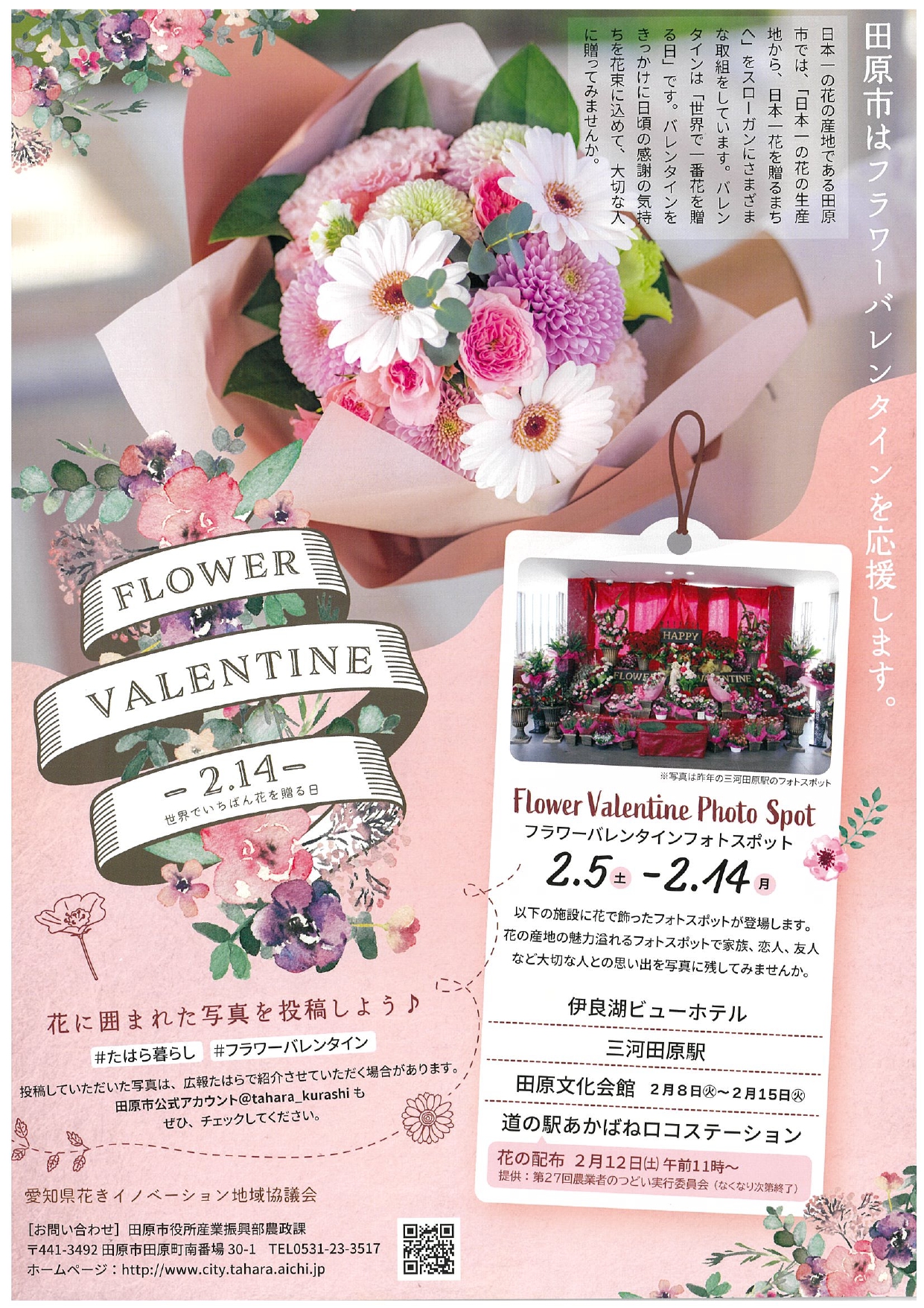 日本一の花の生産地田原市で、渥美半島の花を使ったフォトスポットが伊良湖ビューホテル、三河田原駅、田原文化会館、道の駅あかばねロコステーションに登場しました。