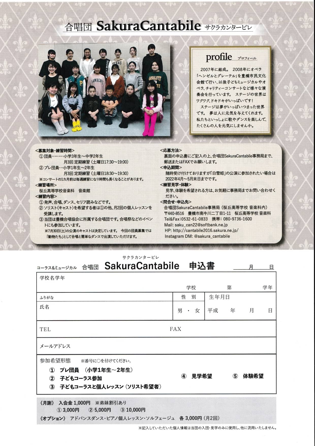 | 詳細 | 合唱団Sakura CantabileHP※本ページは2022.7.18時点の情報になります。 |