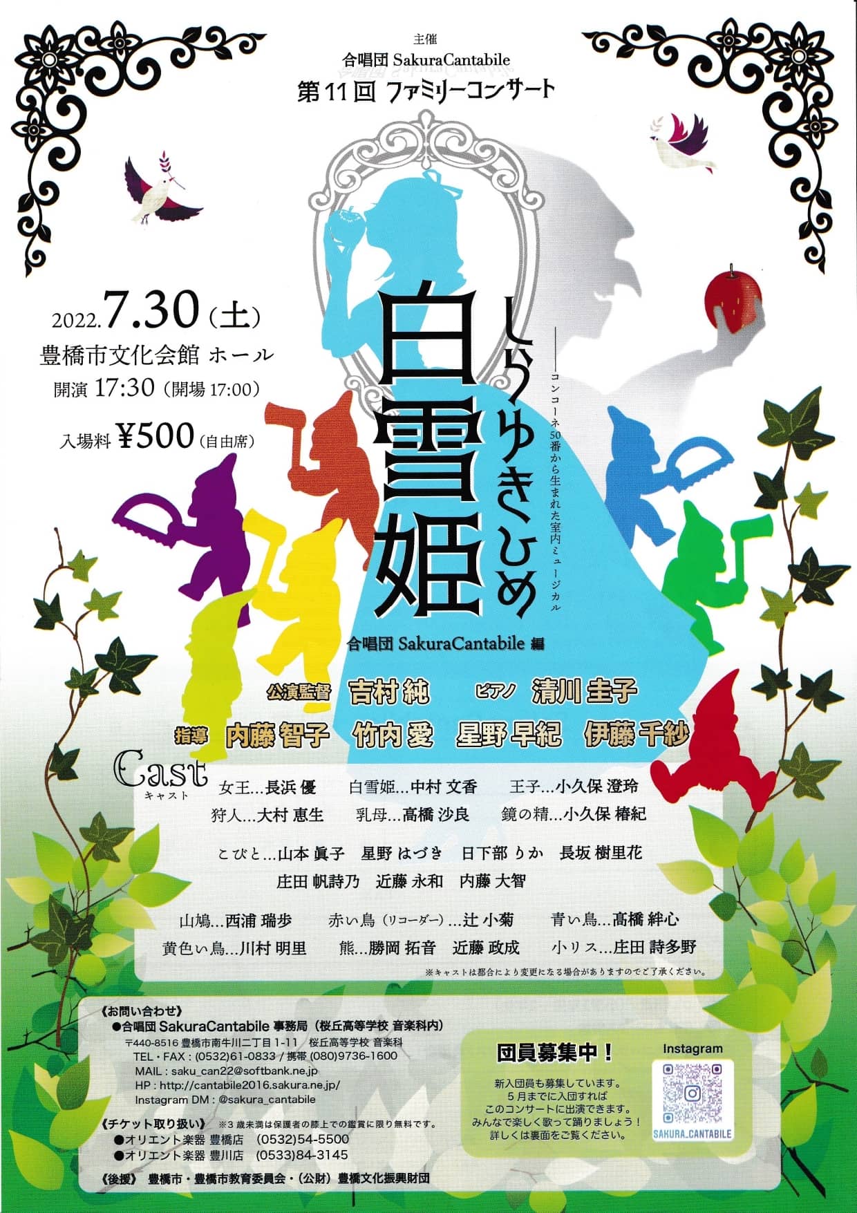 今回は、コンコーネ50番から生まれた室内ミュージカル「白雪姫 合唱団 Sakura Cantabile編」を開催します!