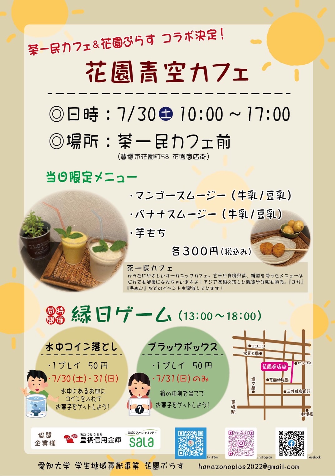 愛知大学 地域貢献事業の花園ぷらすが、7月30日、31日と週末2日間で、