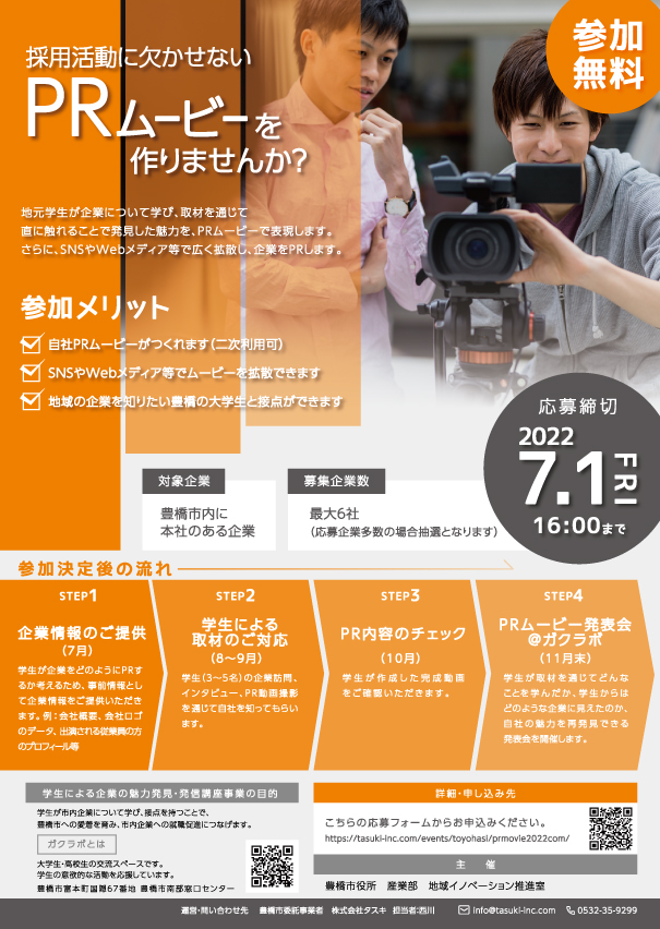豊橋市内に本社のある企業さま、学生と一緒に、ユニークな企業紹介ムービーを作りませんか?