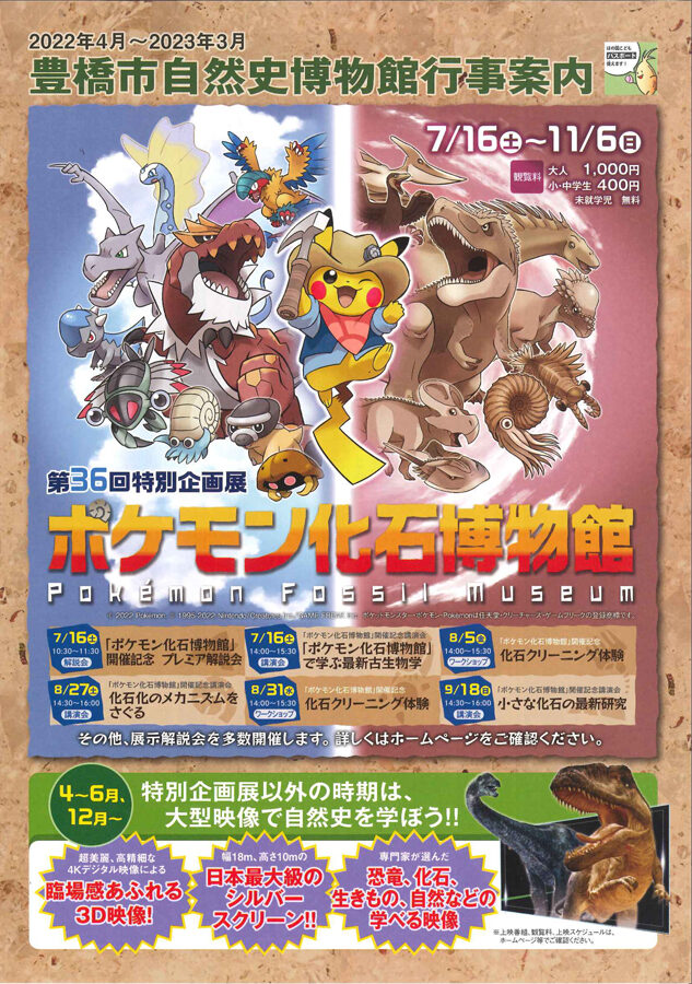 人気ゲーム「ポケットモンスター」シリーズに登場する「カセキポケモン」と私たちの世界で見つかる「化石・古生物」を見比べて、似ているところや異なっているところを発見し、古生物の科学について楽しく学べます。ポケモンの世界の「カセキ博士」とお手伝いの「発掘ピカチュウ」、私たちの世界の博士たちの案内で展示をめぐり、それぞれの世界の「かせき」をじっくり見比べてみましょう!