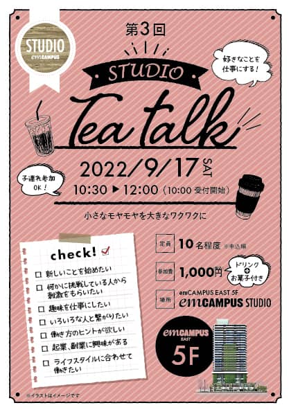 | 参加費 | 1,000円(税込)≪ドリンク、お菓子付き≫ |