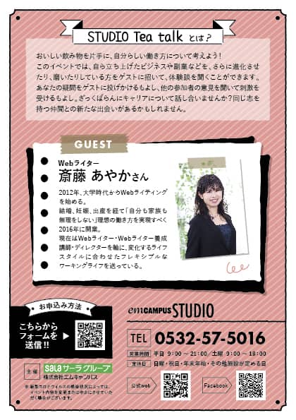 | 場所 | emCAMPUS EAST 5F emCAMPUS STUDIO (豊橋市駅前大通2丁目81) |