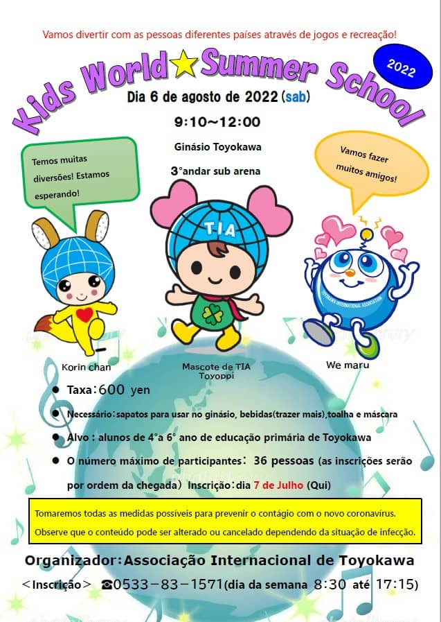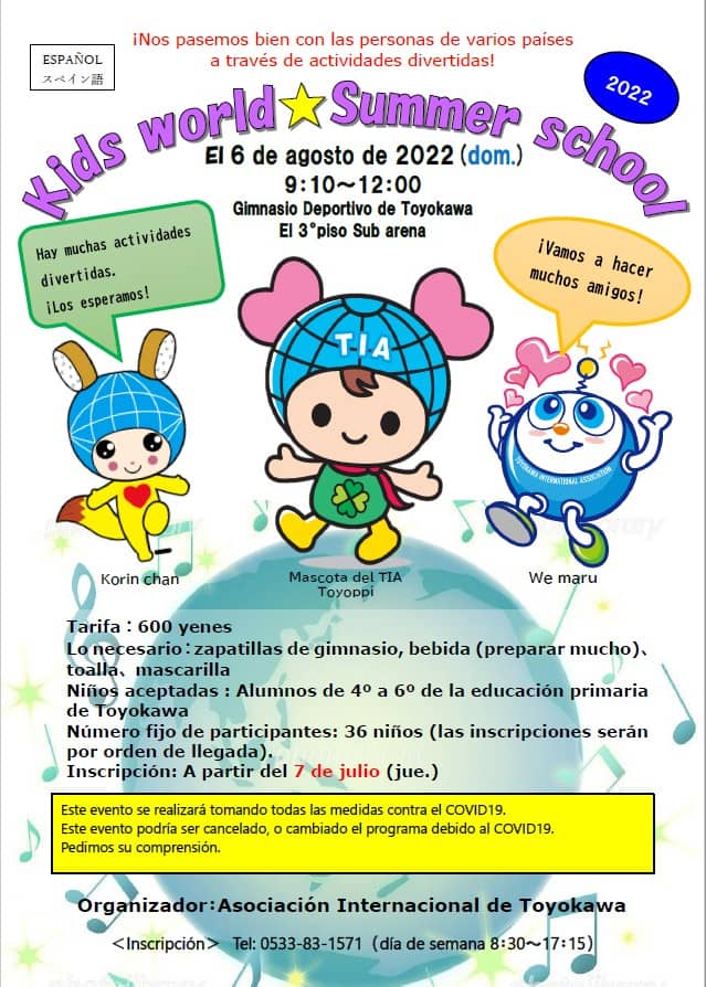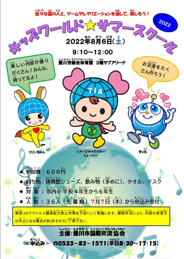 | 申込方法 | 2022年7月7日(木)から豊川市国際交流協会にて先着順 TEL:0533-83-1571(平日8:30~17:15) |