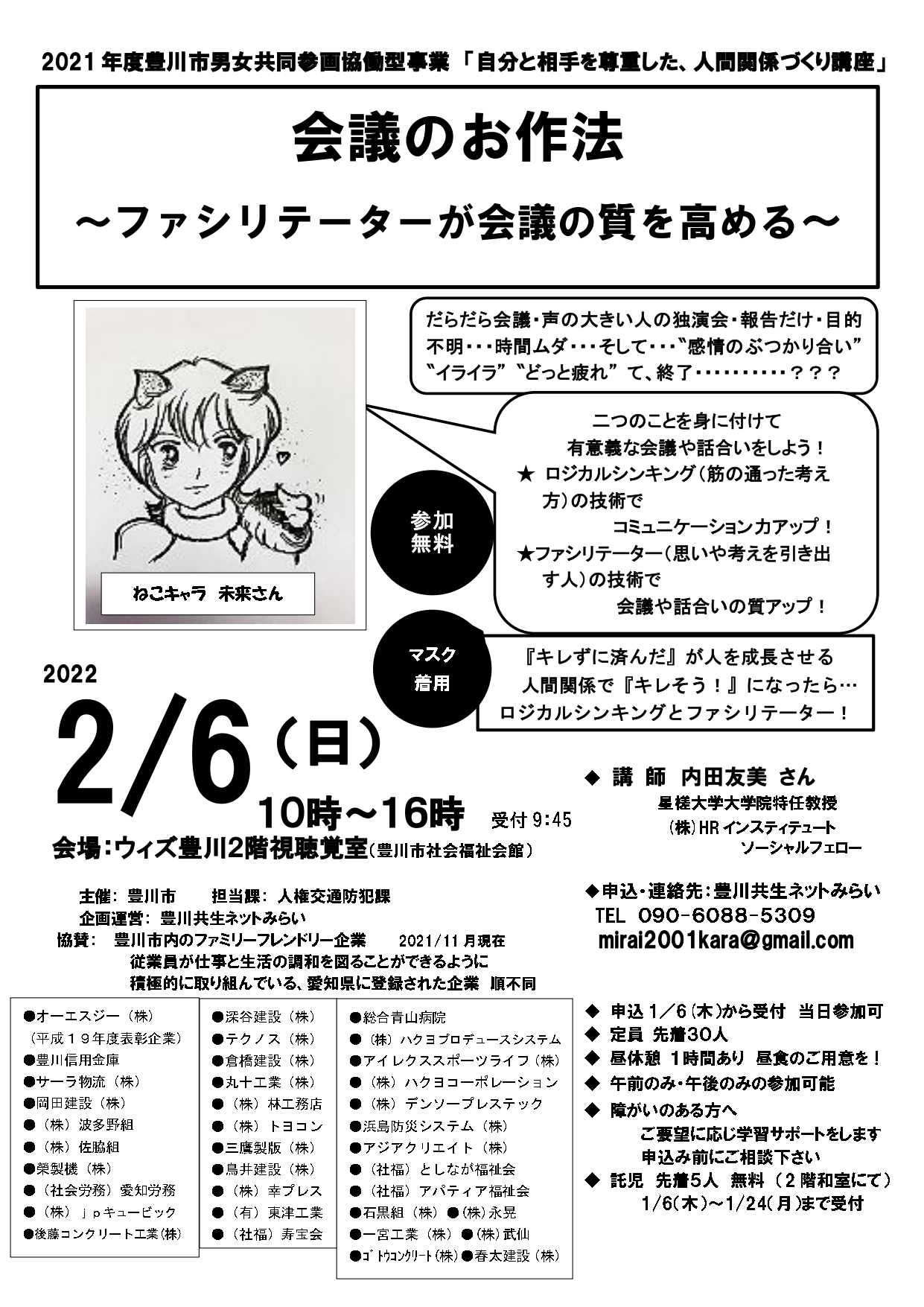 | お問い合わせ | 豊川共生ネットみらい TEL:090-6088-5309 |