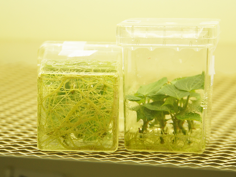 メリクロンで増殖された苗は、完全に遺伝子が一致するクローン苗です。また、それだけでなく、メリクロン苗は、病気や菌が取り除かれたウイルスフリーの状態になります。ウイルスフリーの苗は収穫量が増えたり、肥料を抑えることができるなど、農家の方々の生産を支える重要な役割を果たします。