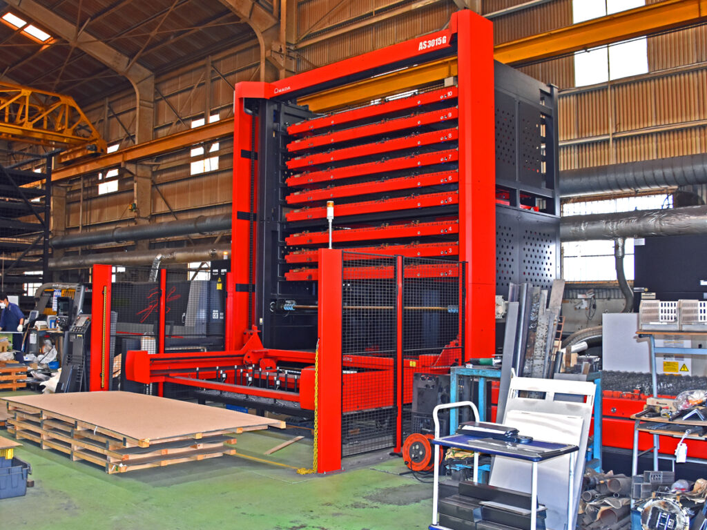 20年以上前、業界に先駆けて24時間連続無人加工ができるレーザー加工機を導入し、生産性向上に力を入れて参りました。最先端の機械は、効率化だけでなく、社員の安全にも寄与します。材料の移動や金型の交換などが自動で行われるマシーンを活用し、事故のない安全な職場をつくっています。