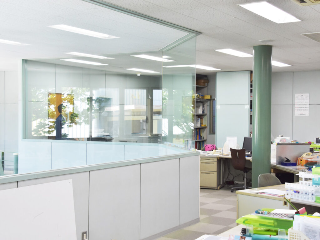 また、事務所棟も打ちっ放しの壁やニュアンスのあるオブジェ、ガラスを多用した開放感のあるオフィスなど、こだわり満載だ。これは、先代である社長のお母さまの「鋼材という堅いイメージを変えたい」という想いが詰まった設計だそう。心地よく仕事ができる環境が整った職場だと感じた。