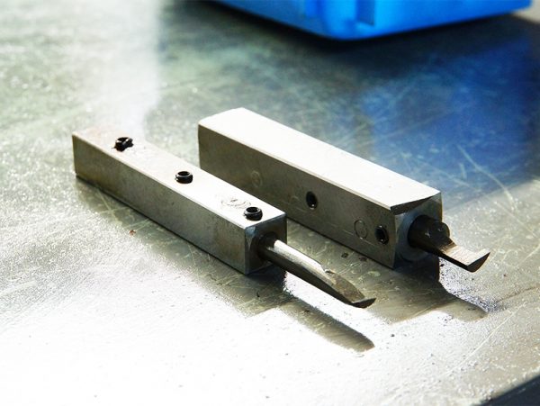複雑で非常に精密な形状の切削加工には、独自の冶具が必要です。曙製作所では、お客さまの加工形状や内容に適した切削工具(手研ぎバイト)を駆使し、高度な要求にも迅速かつ高い技術で対応します。また、一つの素材に複数の加工工程が必要な場合でも、最適な工程を提案し、円滑な生産を実現できる体制を整えています。