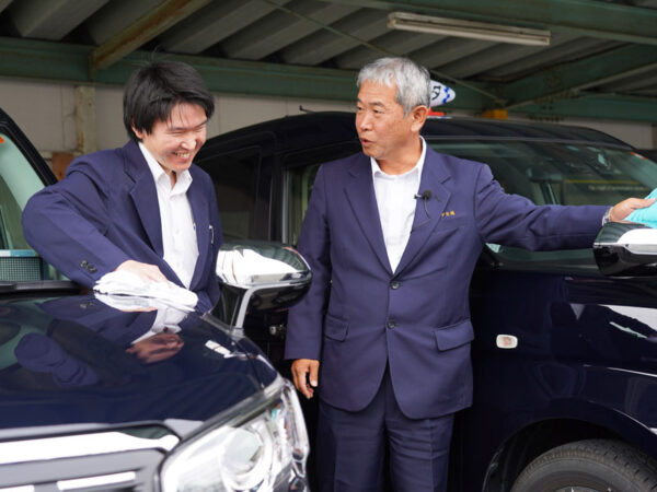 代表取締役の山本には、「まごころのこもった接客でお客さまにリラックスして頂きたい。もう一度乗りたいと思ってもらえる、お客さまにやさしいタクシー会社にしていきたい」という強い想いがあります。やさしい言葉遣いや接客態度、乗降時の積極的なドア開閉サービス等を普段から徹底するなど、従業員全員でこの想いを共有しています。