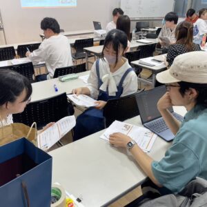 第1回目の事前セミナーでは、名刺交換の仕方やビジネスマナーも学び、安心して当日を迎えられるよう準備しました。