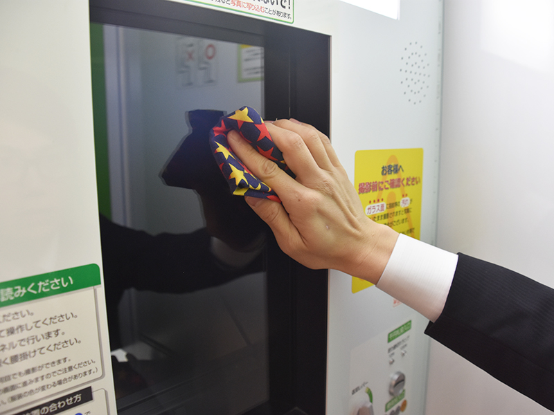 次に、正面のガラスにほこりや汚れがついていないか確認します。