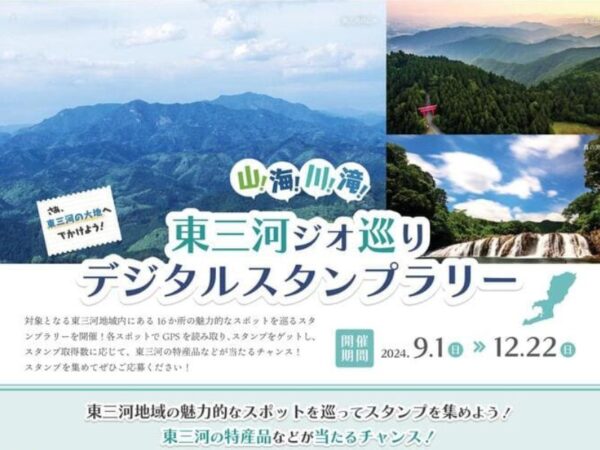 東三河地域内にある16か所のジオスポットを巡るスタンプラリーを開催! 各スポットに行ってスマホなどから専用サイトにアクセスすることで、スタンプをゲット、ゲットしたスタンプの数に応じて、東三河の特産品などが当たります。 金…