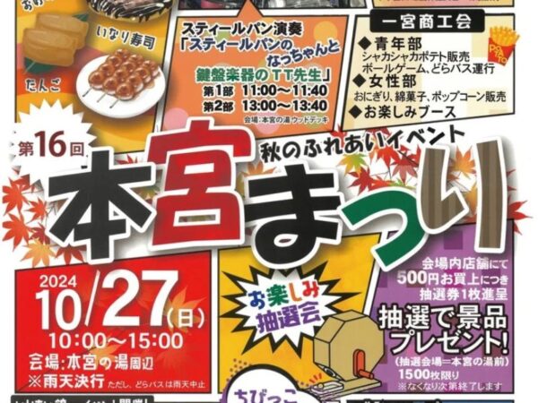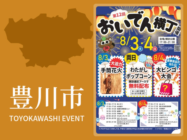 おいでん横丁実行委員会(すわポン商店会・諏訪連区・株式会社本宮)が主催する、中心市街地諏訪地区の夏の夜の風物詩「第12回おいでん横丁」を諏訪公園にて開催します。 日時 2024年8月3日(土曜)、4日(日曜) 17:00…