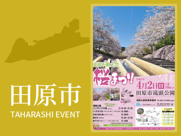 田原市を代表する桜の名所、滝頭公園で屋台、甘酒の振る舞い、餅投げなどが行われます。 ※新型コロナウイルス感染症拡大状況により、内容を変更・中止とする場合があります。 参加者の皆様へのお願い事項 ・発熱などの症状がある方は…