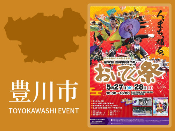 2023年5月27日(土)、28日(日)に豊川市野球場において4年ぶりにおいでん祭が開催されます。「ダンスフェス23」等恒例ダンスのイベント、商業・グルメコーナー、戦隊ヒーローショー、陸上自衛隊豊川駐屯地の音楽隊による演…