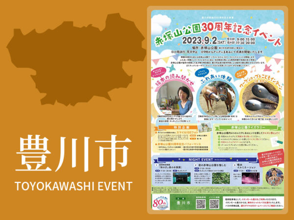 豊川市制施行80周年記念事業として、開園30周年を迎える赤塚山公園で、「ミライにカケル」をテーマに各種イベントを開催します。 昼の部は、新たなふれあい体験として、ポニー(ミライとカケル)とその日限定の馬に乗ることができ…