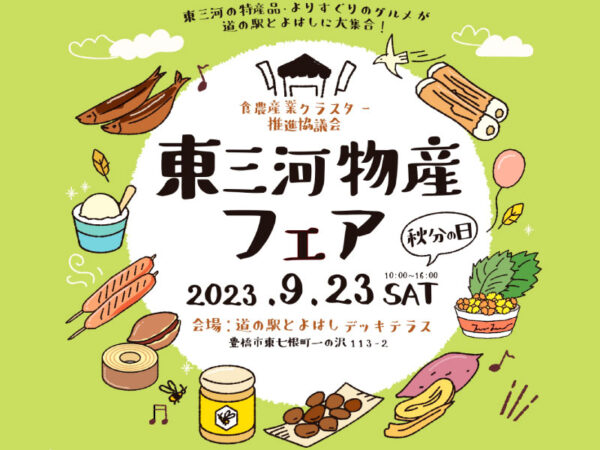 今年もやってまいりました東三河物産フェア。 今回も東三河の特産品・よりすぐりのグルメが道の駅とよはしに大集合します!! 日時 2023年9月23日(土・祝) 10:00~16:00 会場 道の駅とよはし デッキテラス (…