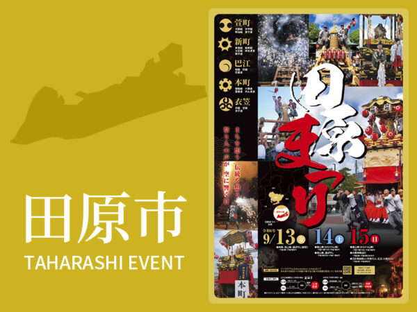 からくり人形を載せた山車、神輿などが練り歩く田原伝統の祭り、令和6年度の田原まつりを開催いたします。 9/13(金) 神輿、夜山車、道ばやし(新町)16:00~21:00 9/14(土) 昼山車(からくり山車)10:10…