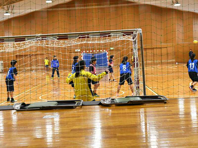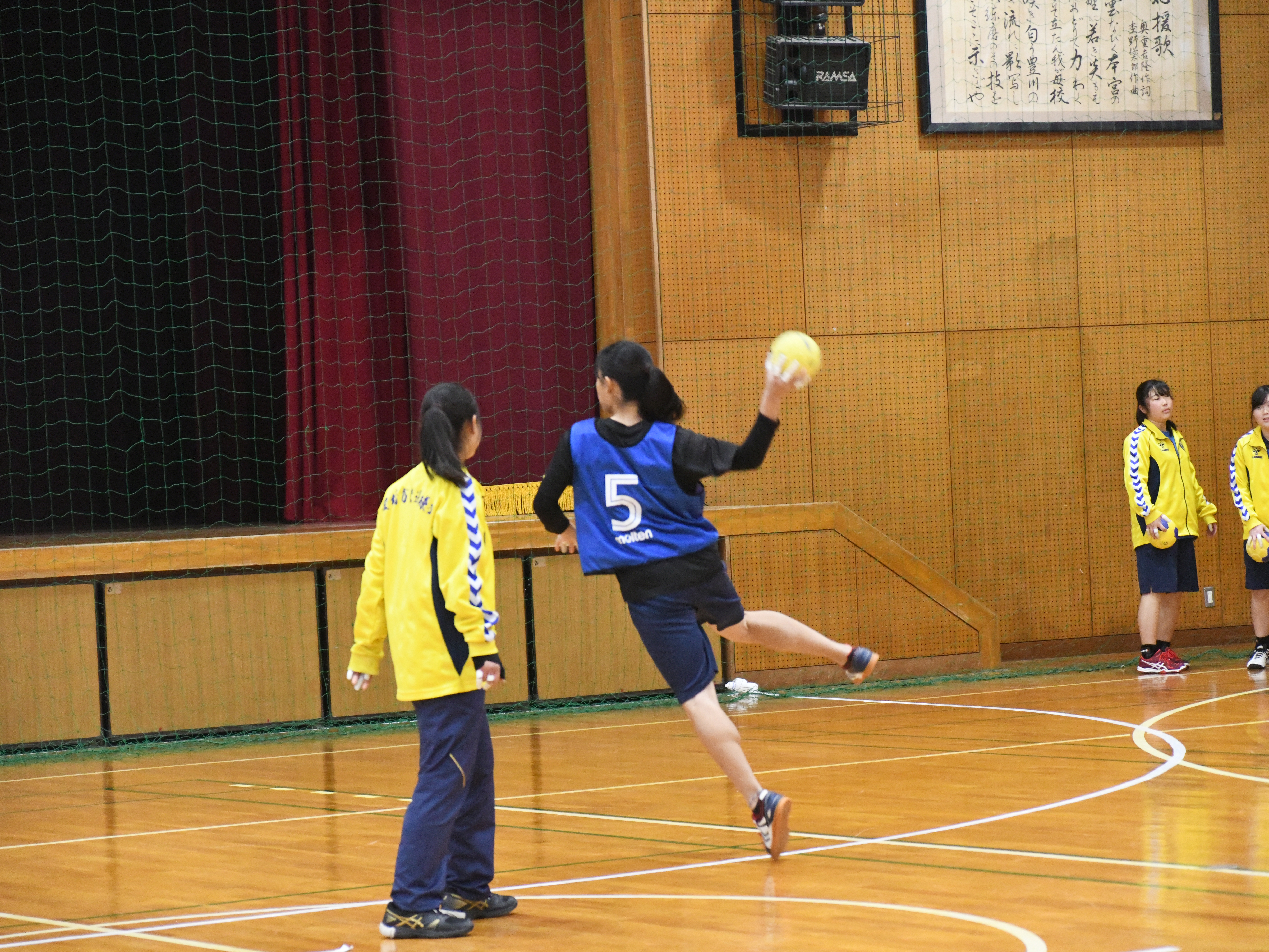 ハンドボールという競技を初めてやる子が多い中、お互いで声かけなどのサポートをしながら頑張っています。