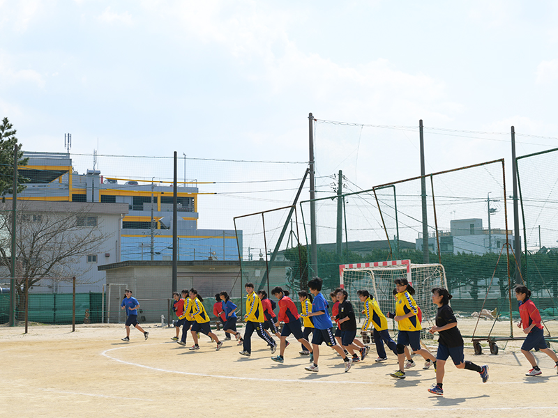 初めてハンドボールを経験する部員も多いのですが、全体的に挑戦しようとする前向きな気持ちを感じています。休日には、外部コーチやOBも来てくれるので、経験者・未経験者に関わらず、レベルアップできる環境があり、いい雰囲気で練習できています。
