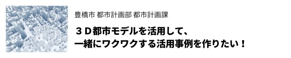 デジタル化やDXの必要性の高まりにより、都市を3Ⅾ空間で再現する動きが全国的に広がっています。豊橋市においても3Ⅾ都市モデルをデジタルインフラと捉え、行政だけでなく企業や大学などさまざまな分野で活用すべく整備とオープンデータ化が進められています。